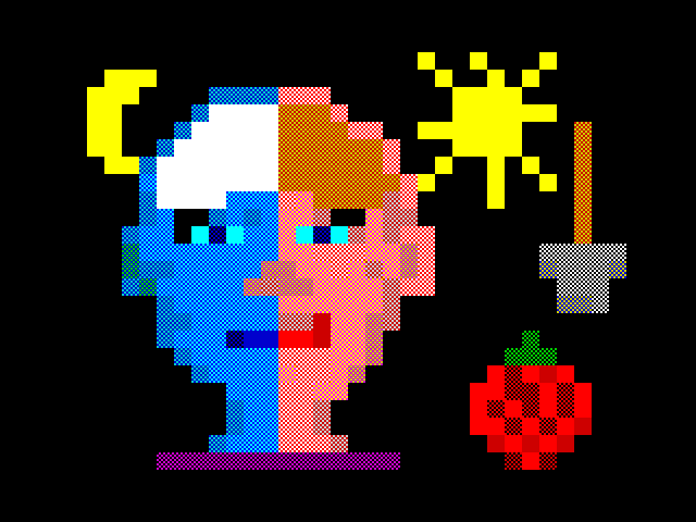 За отведенное время нарисовать картинку на заданную тему в атрибутном режиме компьютера ZX Spectrum (32х24 точек, 53 цвета)